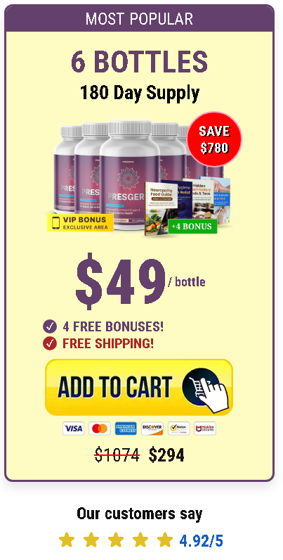 Great Choice! You’re About to Secure Up to 60% OFF the Official Presgera Formula.